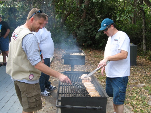 Sky Horse and Silly Heart Grilling the Bangers and Burgers